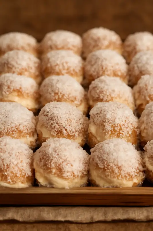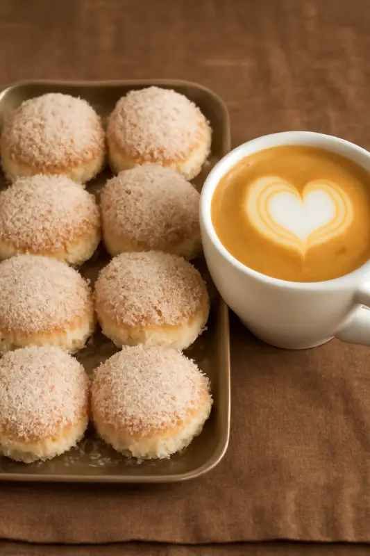 Delicias de coco. Esponjoso bizcocho de coco empapado y relleno en su interior.