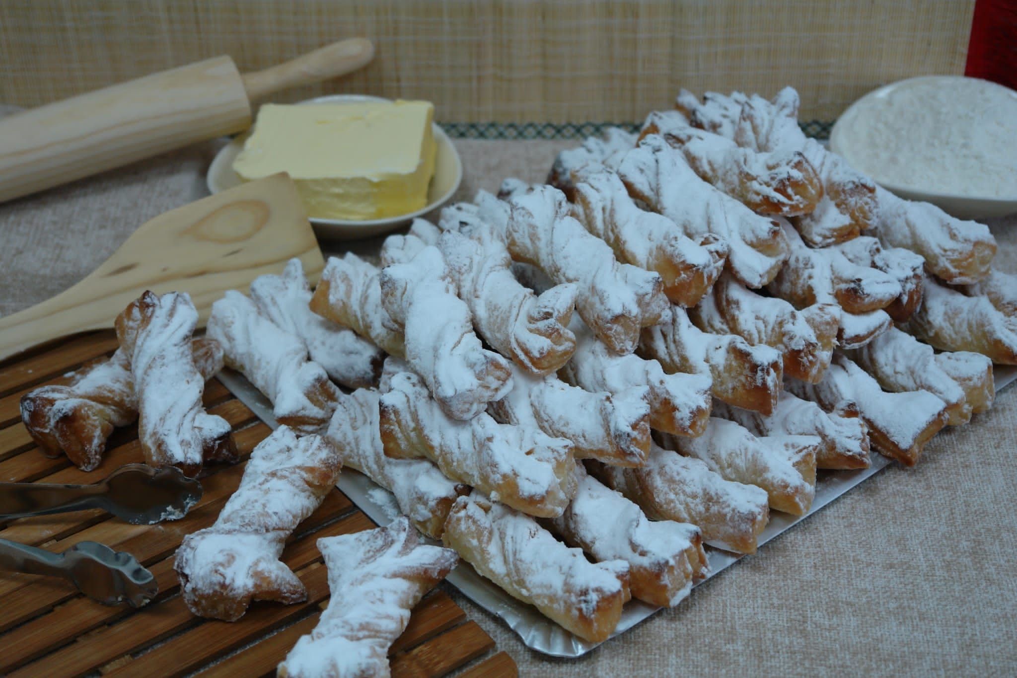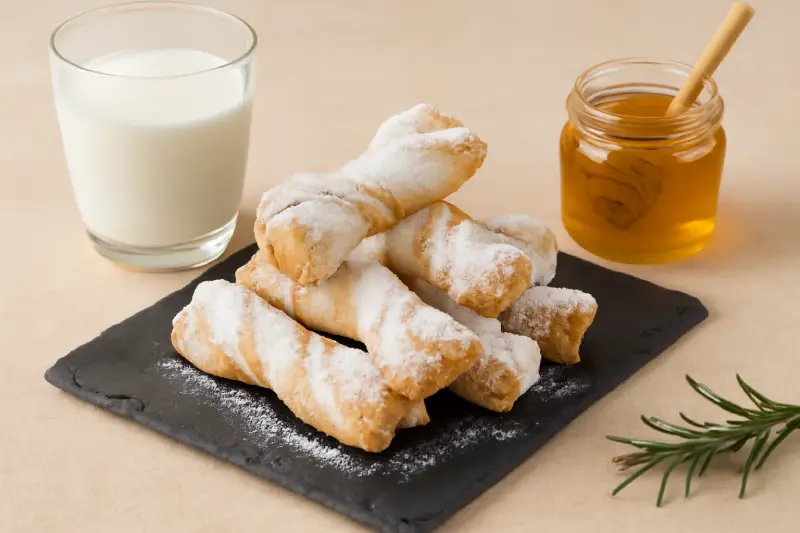 Finísimas láminas de hojaldre con un suave baño de miel y azúcar y recubiertas de azúcar glasse